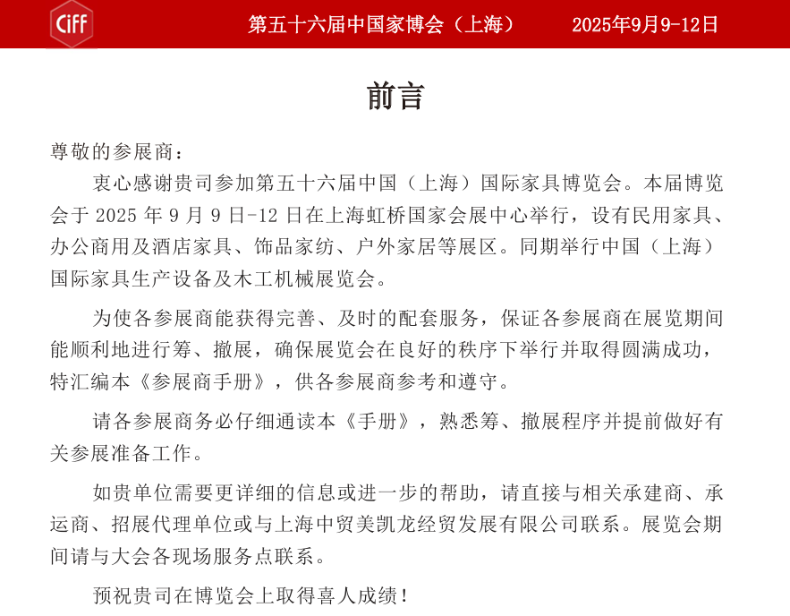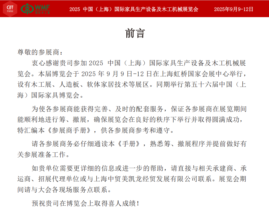 2025 中国(上海)国际家具生产设备及木工机械展览会参展商手册