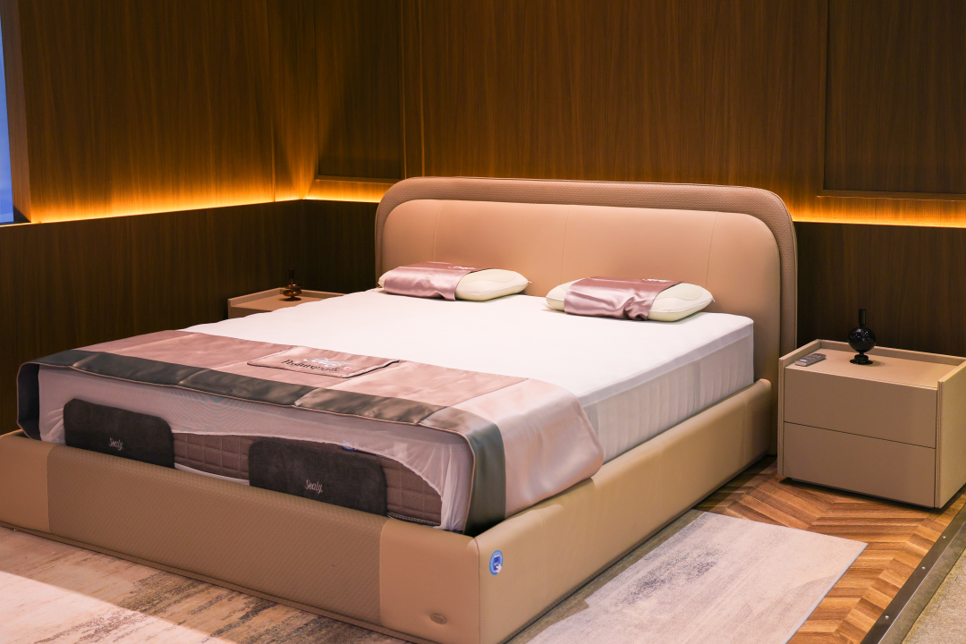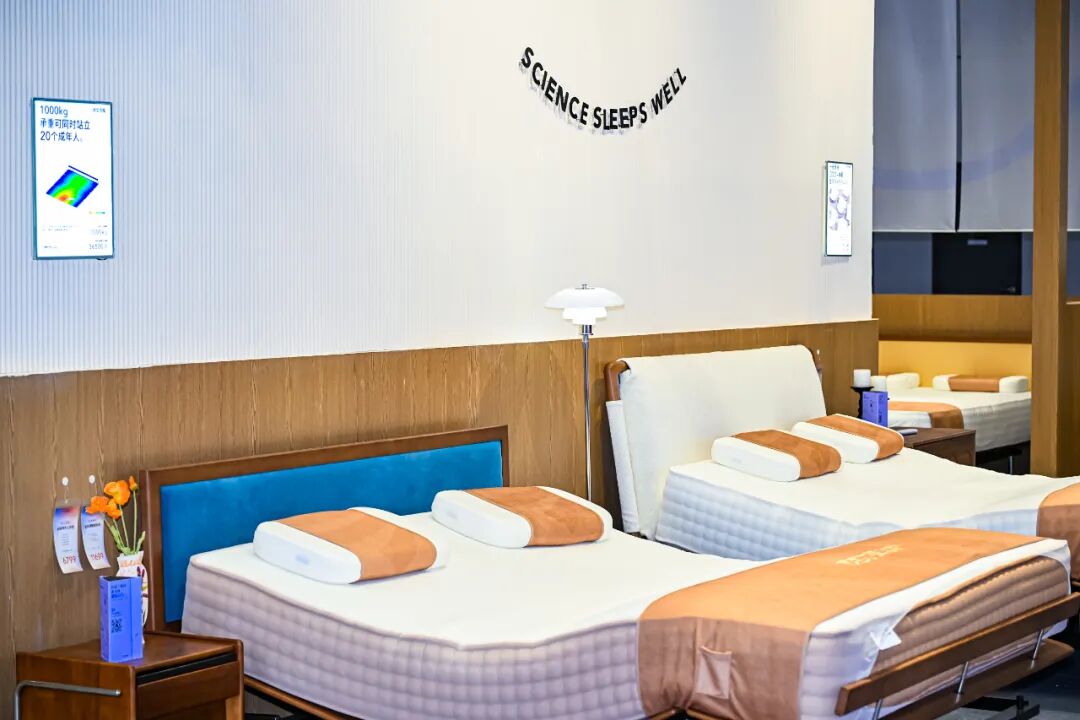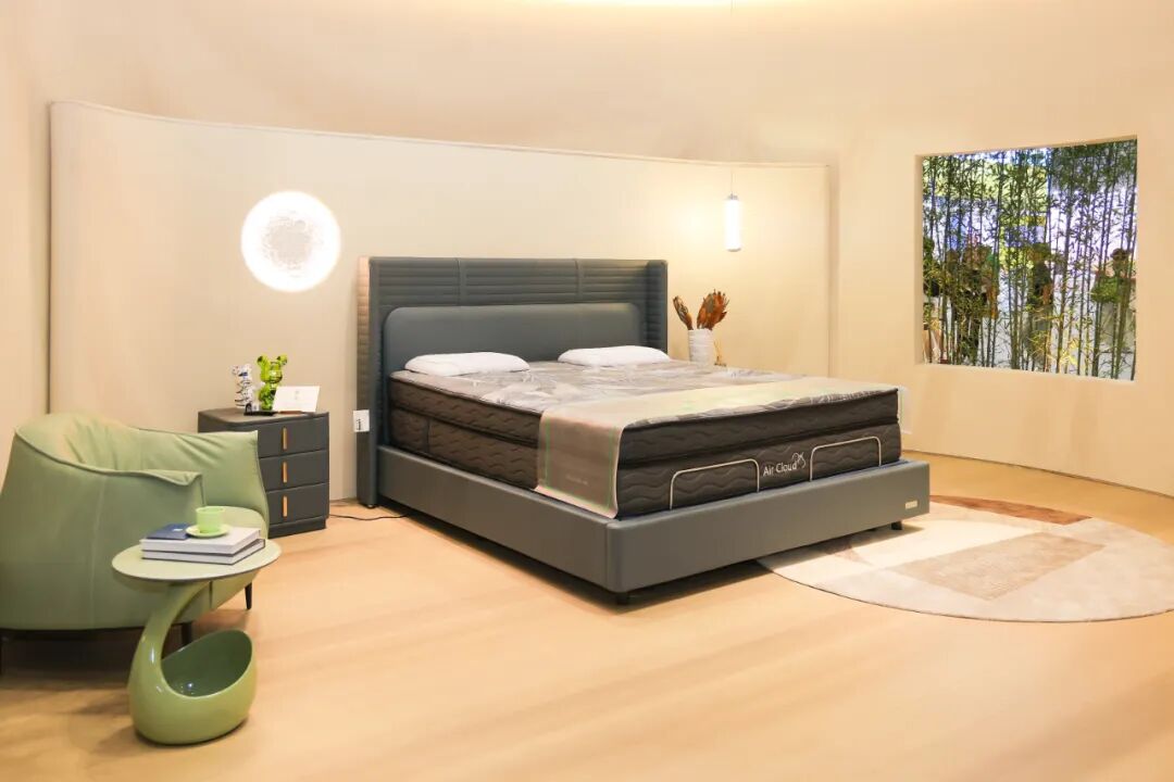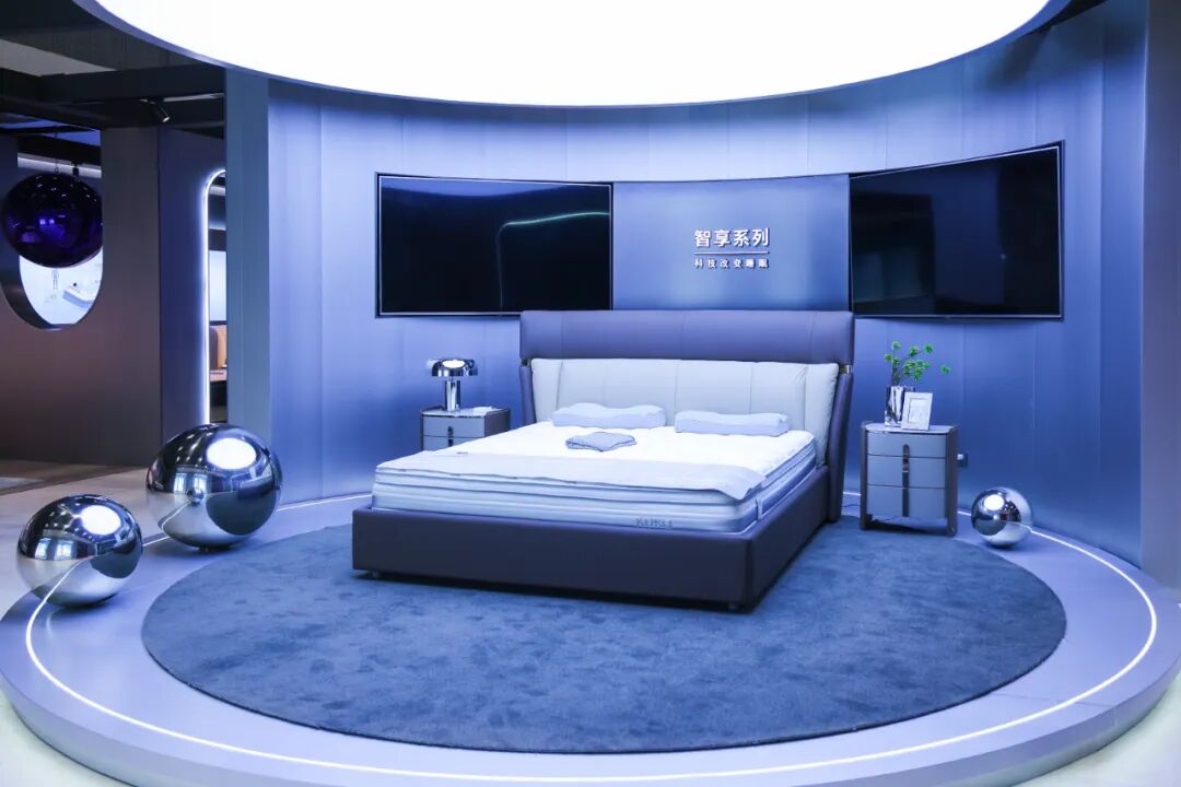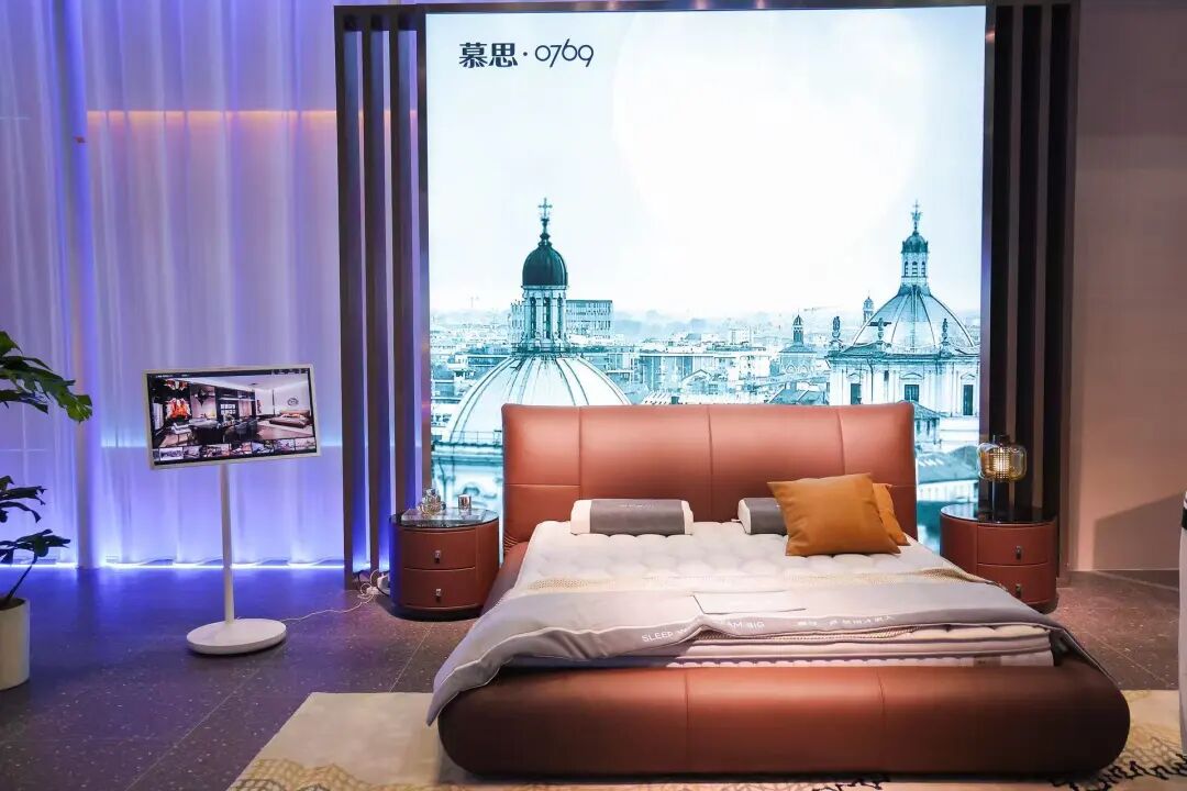 出乎汇集小半家具、muu home、续写家具、蓝盒子、咚哒 oktota、INNER HAUS、zolle等新势力家具品牌,涵盖原木、中古、侘寂等设计风格;木陌于现场首次完整亮相「自然共生」主题新品,以圆润线条、亲肤牛皮和原木五金材质,以温润复古色调打造兼具治愈力与实用性的家居设计;巢趣推出安娜全实木高柱床,以大提琴元素与罗马柱曲线演绎柔美艺术生活;里境本次最新推出“0重力”模式,通过连杆系统实现大角度无极调节,联动腿托模拟宇航员悬浮姿态,有效降低心血管压力;菠萝斑马带来代表性的0号智能床黑巧,采用超薄床头、金属床腿与标志性尾翼设计,融合智能功能与极简线条。