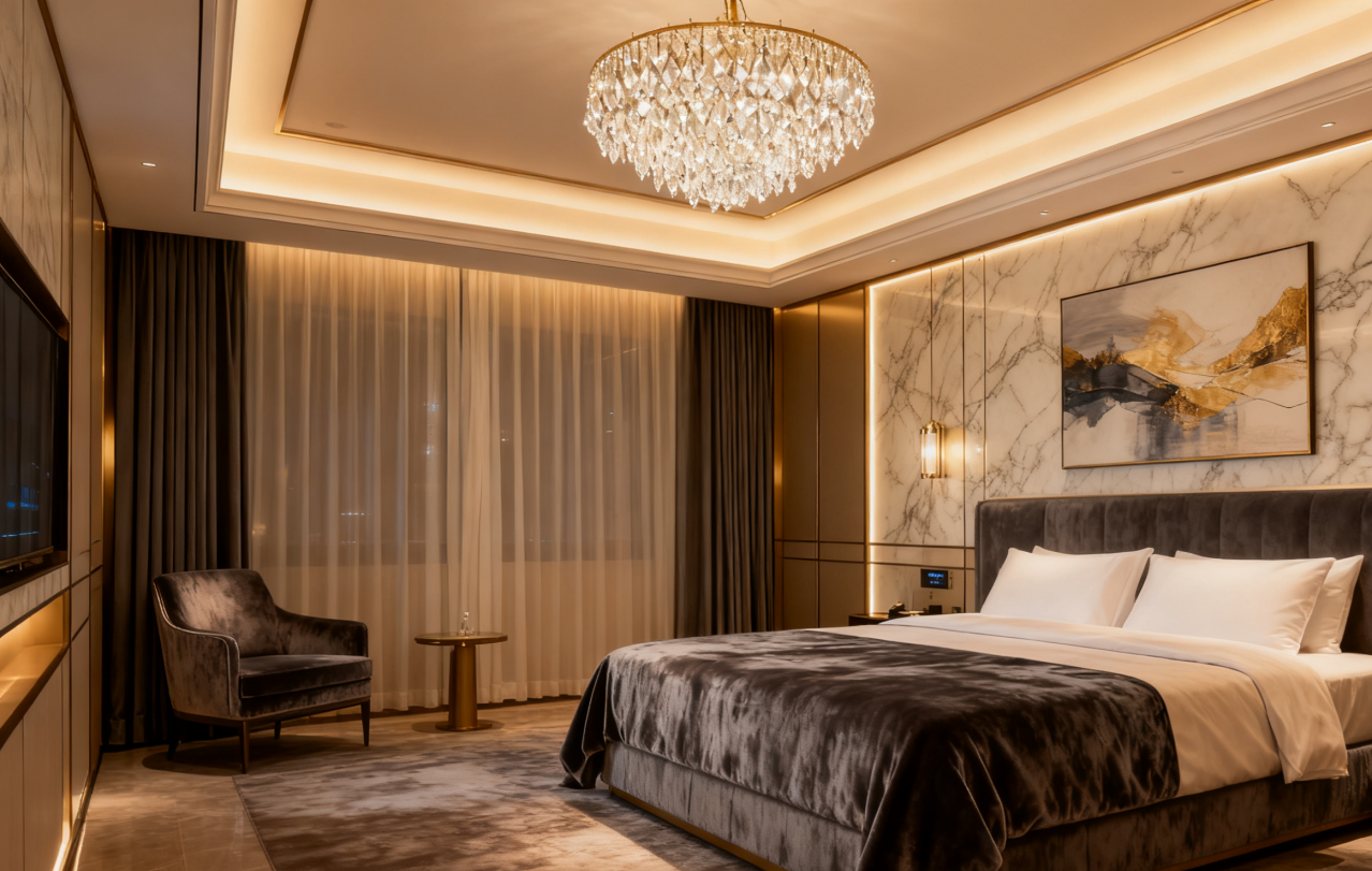 现代酒店客房正朝着功能集成化方向发展。最新的技术方案将水电、智能化、家具等功能整合到统一的模块系统中。集成化墙面系统不仅承载装饰功能,还内置管线通道和智能控制模块,实现空间利用效率的最大化。