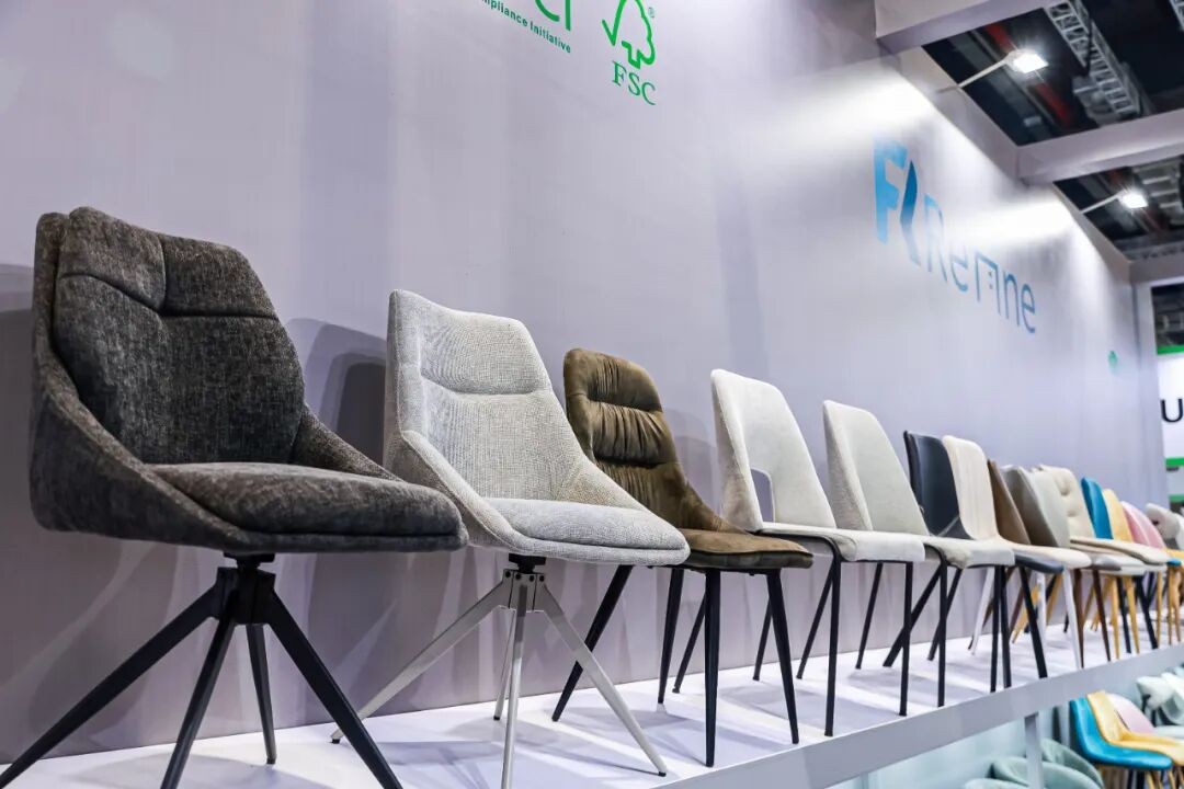 柏思诺推出拉抬组合,以现代简约风格为核心,注重实用与适配性;伟誉wy7176旋转餐椅座感柔和、适配实木餐桌;奢意主打C339椅,融合意式极简与中古风格,以木质椅腿与彩色靠垫兼顾美观与舒适;K&J 凯杰展出北欧岩板旋转伸缩餐桌,满足多人用餐需求;业煌塑胶椅采用PP加玻璃纤维一体成型,坚固实用,可选软垫提升舒适度。
