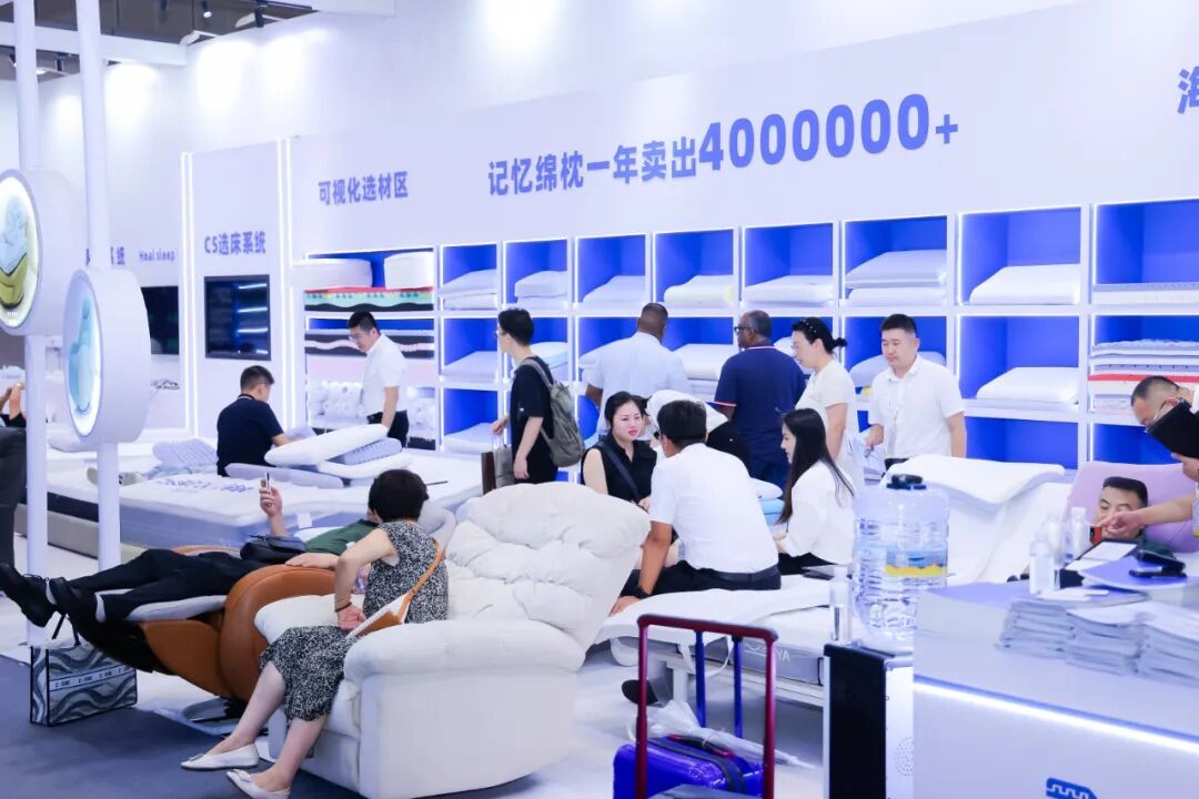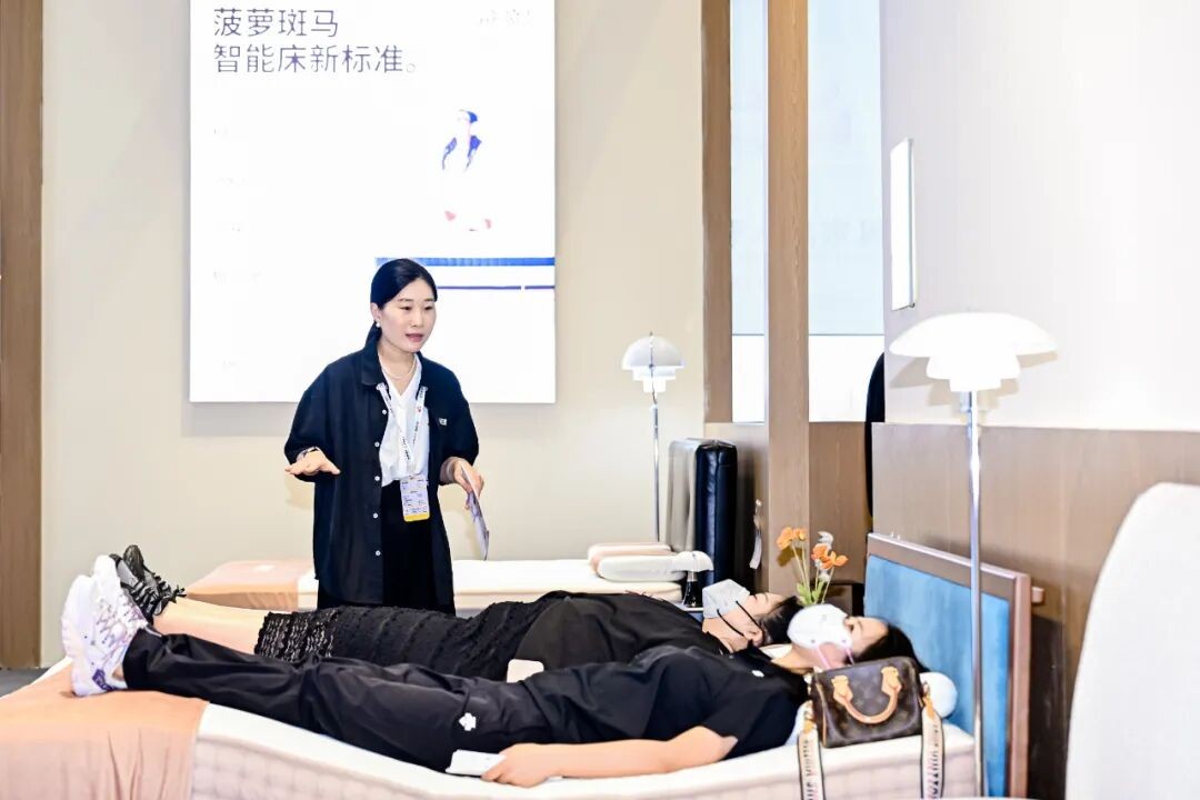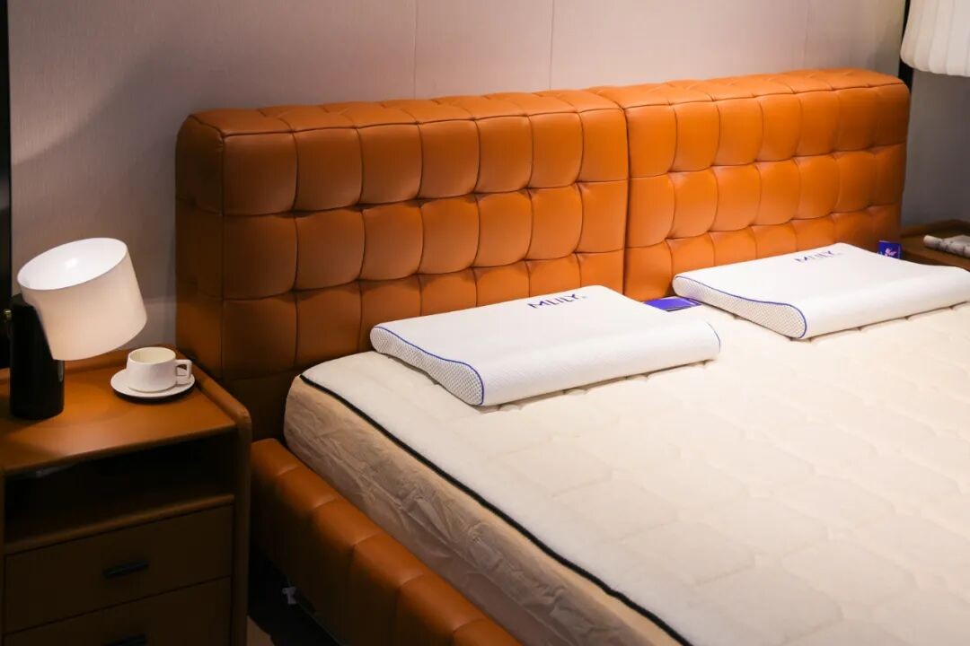 雅兰本次展出知夜、绿径、静茵等系列产品,融合材料创新、支撑系统与智能响应,配合4C哄睡系统,实现“更快入睡、更深睡眠、更好醒来”;慕思此次主推T11+智能床垫,搭载AI潮汐算法2.0,依托百万人体数据实现分区调节与睡眠管理,并新增心率预警与睡姿监测功能;顾家家居于现场打造“卧室空间体验馆”,以科技睡眠为主题,通过场景化体验展示智能化探索,并发布IDeep高端深睡系列新品,以全球精选材质打造奢华睡眠体验;梦百合携多款智能睡眠产品亮相展会,包括接入华为全屋智能生态的L7、支持米家生态的S系列以及健康呵护、健康关爱等,精准覆盖不同用户群体的睡眠场景;丝涟带来李娜联名款焕梦床垫,采用专利美姿弹簧与蔚蓝乳胶,结合透气层与柔滑天丝面料,在精准承托与腰部呵护间实现平衡。
