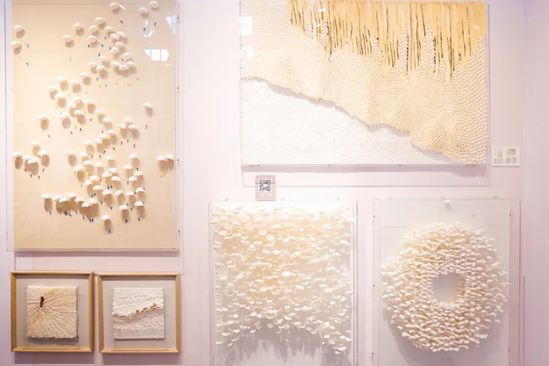 闲云融合艺术创作与空间美学,2025年翅膀羽毛系列以浅灰与金箔勾勒灵动意境,厚刮刀技法提升画面质感;太阳姊妹以“琼林玉树”系列展现自然纸艺与手工温度,通过可再生材料与环保工艺,将自然灵感融入当代美学;RENICELUTION呈现新品WING艺术灯具,深度融合意式美学底蕴与东方意境哲思。