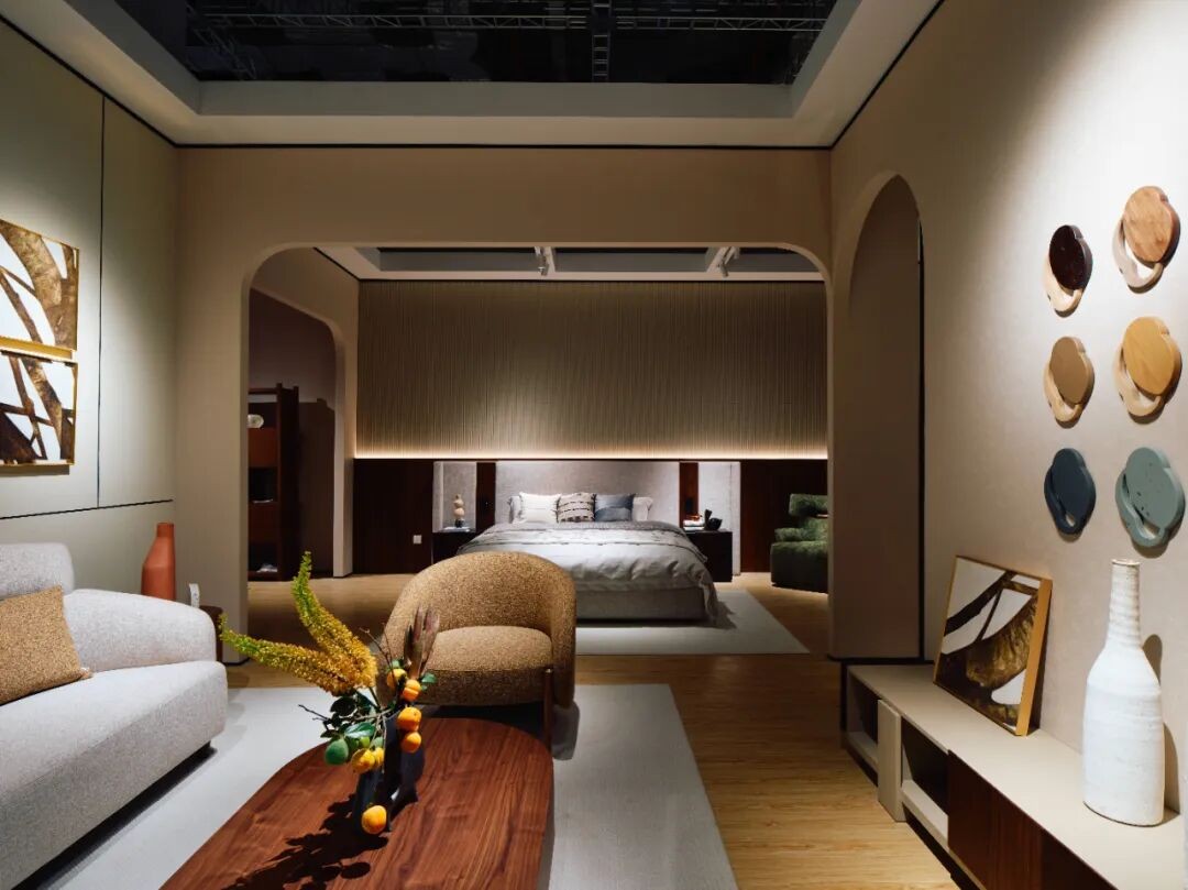隐琢家居YINZHUO今年以“界外生长”为主题,以“艺术X设计X未来”为线索,突破家居、艺术与空间的传统边界,竹架结构呼吸式半户外场景,更是将人与自然、家具与建筑有机地结合,演绎“共生”;KBH今年与唐忠汉老师联合打造系列产品「静构系列」,以一种凝视结构与时间的设计语言,呈现出静默而深邃的气质,赋予家具建筑一般的姿态与气场;Carbine 卡缤美学家居此次携Carbine Italia首次亮相,通过产品、活动多维度形式展示Carbine Italia的意大利研发设计大师和意大利供应链体系,体现品牌的极致用心;小兜家居DOU HOME此次结合第四代住宅,以大宅空间为核心,打造社交性餐客厅等多个空间场景,展出弧型沙发、感应餐台、茶台等吸睛新品;诺丁山Notting Hill此次推出起源|Origin系列,以黑胡桃木的深邃质感与麦克西蒙石的自然肌理为基调,将多重风格巧妙糅合,孕育出“复古+”的独特概念;Tikahome极家秉持着“当代匠人”的精神,此次带来全新系列“Motelda”,该系列由设计师团队历时两年打磨,通过极简线条与模块化结构,打造超越时空的生活诗意;HOOSH作为一家专注玻璃家具的原创品牌,在玻璃领域里深耕,将玻璃与不同材质结合,打造玻璃的无限可能。